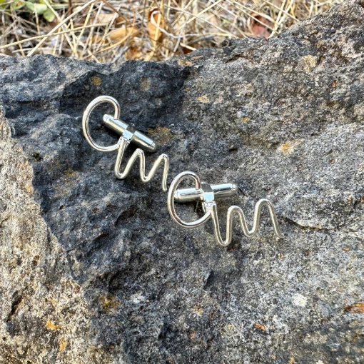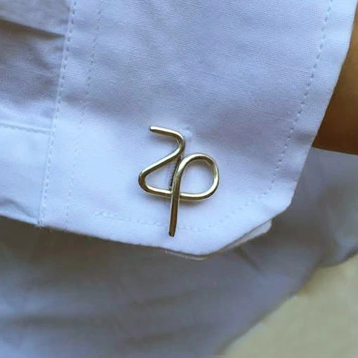 Botões de punho em fio de prata com fecho de mola cilíndrico.