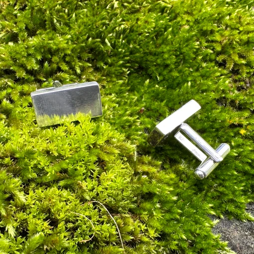 Botões de Punho Retângulo Ref.: BP024 200,00€ encomendar Material: Prata 925 Peso: 25 g Botões de punho em prata com fecho de mola cilíndrica. VOLTAR à PÁGINA ANTERIOR