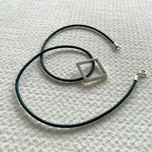 Fio de cabedal preto com 2 mm de diâmetro e 44 cm de comprimento.